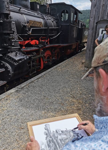 Wie die Zeit vergeht… Hier sehen wir unseren Mitarbeiter Klaus Schwehm links in jungen Jahren 1962 beim Dienst auf einer Dampflok der Baureihe 23 stationiert in Kaiserslautern. Und rechts sehen wir ihn im Oktober 2022 anlässlich der Plandampfveranstaltung Pfalz wie er die Schwesterlok (war ebenfalls in Kaiserslautern stationiert) besteigt. Klaus war bis 2021 noch aktiver Lokführer auf dem Kuckucksbähnel. Er hat sich nun aus Altersgründen aus dem Fahrdienst zurückgezogen und ist aber selbstverständlich weiterhin aktiver Mitarbeiter bei uns. Foto rechts (c) S. Jung