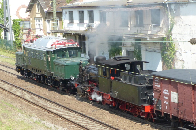 Kraftpaket.... ....nein, unsere Dampflok machte am 27.06. nicht schlappp, so dass diese schwere historische Güterzuglok einspringen musste. Diese E-Lok Baureihe E94 war zu abschließenden Hauptuntersuchung in unserem Betriebswerk und man nutzte die Fahrt bis Lambrecht als Teil der Abnahmefahrt nach der Untersuchung. Die E-Lok gehört dem Verein "Elektrische Zugförderung Württemberg" Foto (c) J. Lemke