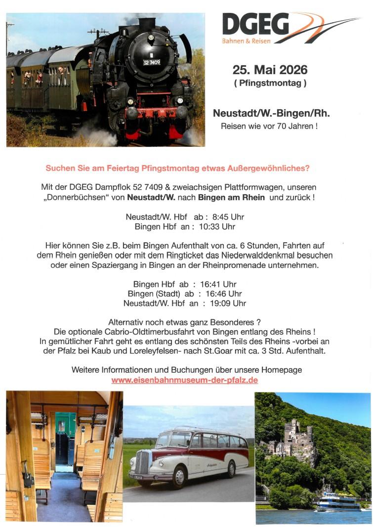 Dampfzug von Neustadt (Weinstr) Hbf über die Alsenzbahn und entlang der Nahe nach Bingen (Rhein) Hbf.